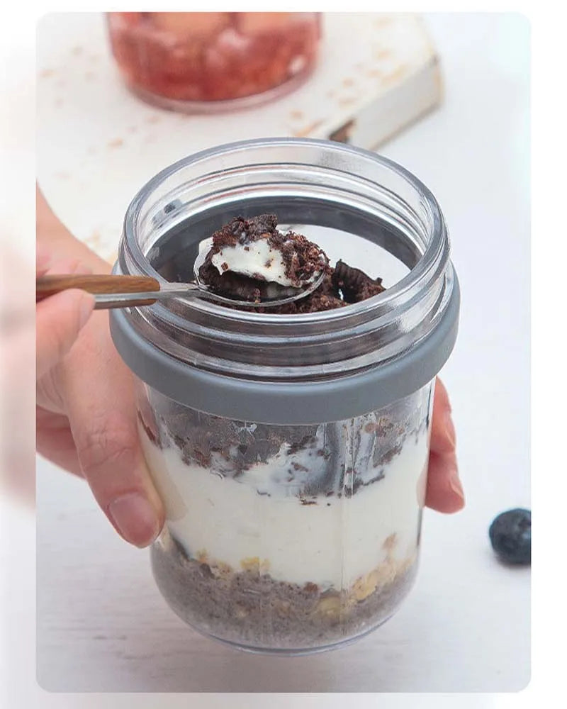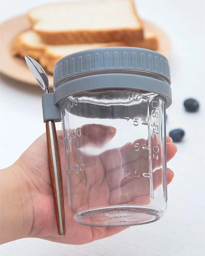 Imagine prepping your oats the night before: simple ingredients layered in the jar, the lid snapped on, the spoon tucked neatly inside. In the morning you grab it, head out the door, and enjoy your breakfast without mess or delay. The glass or food-safe material (depending on variant) keeps flavors fresh and clean-tasting, while the wide-mouth makes it easy to fill, mix and eat right from the container.