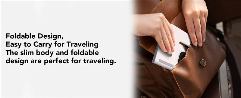 Travel easier with a foldable design that fits your bag, suitcase or nightstand.