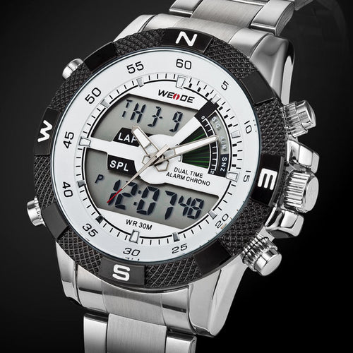 On the watch side, the quartz movement ensures accuracy you can count on. A luminous dial (or luminous hands) delivers readability in low light. The LCD display offers secondary features—alarm, stopwatch, calendar, backlight modes—turning it into more than just a timekeeper. With waterproof construction (splash or light rainy conditions) and durable casing, it stands up to everyday life. Compact enough to carry, yet robust in function, it’s ideal for bedroom, office desk, or on-the-go use.