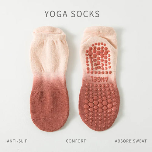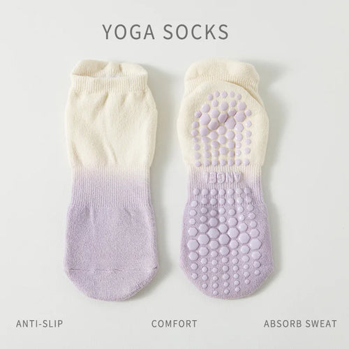 Elevate your practice with socks that do more than look good — they support every stretch, hold and pose. These gradient-colour socks blend soft cotton comfort, a breathable knit, and high-traction silicone grips underfoot to help you stay grounded whether you're on the mat, barre, or simply lounging post-workout.